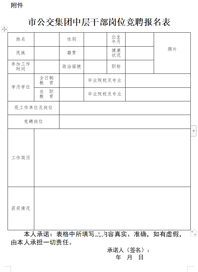 附件:市公交集團(tuán)中層干部副職崗位競(jìng)聘報(bào)名表