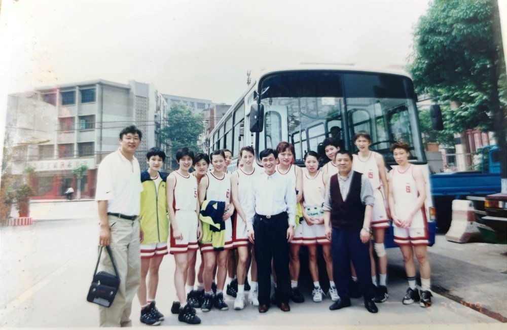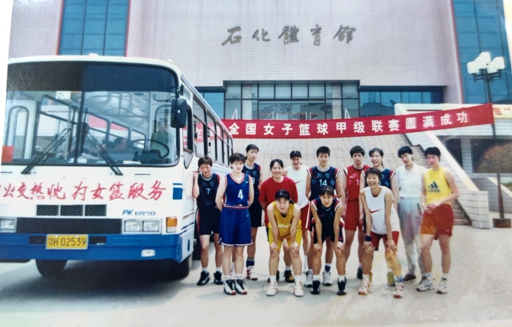 ▲1999年5月25日,沈陽(yáng)電梯隊(duì)在公交車旁合影留戀。從“中國(guó)籃球大事記”查閱到,1999年全國(guó)女子籃球甲級(jí)聯(lián)賽,沈陽(yáng)電梯隊(duì)奪得了當(dāng)年聯(lián)賽冠軍。