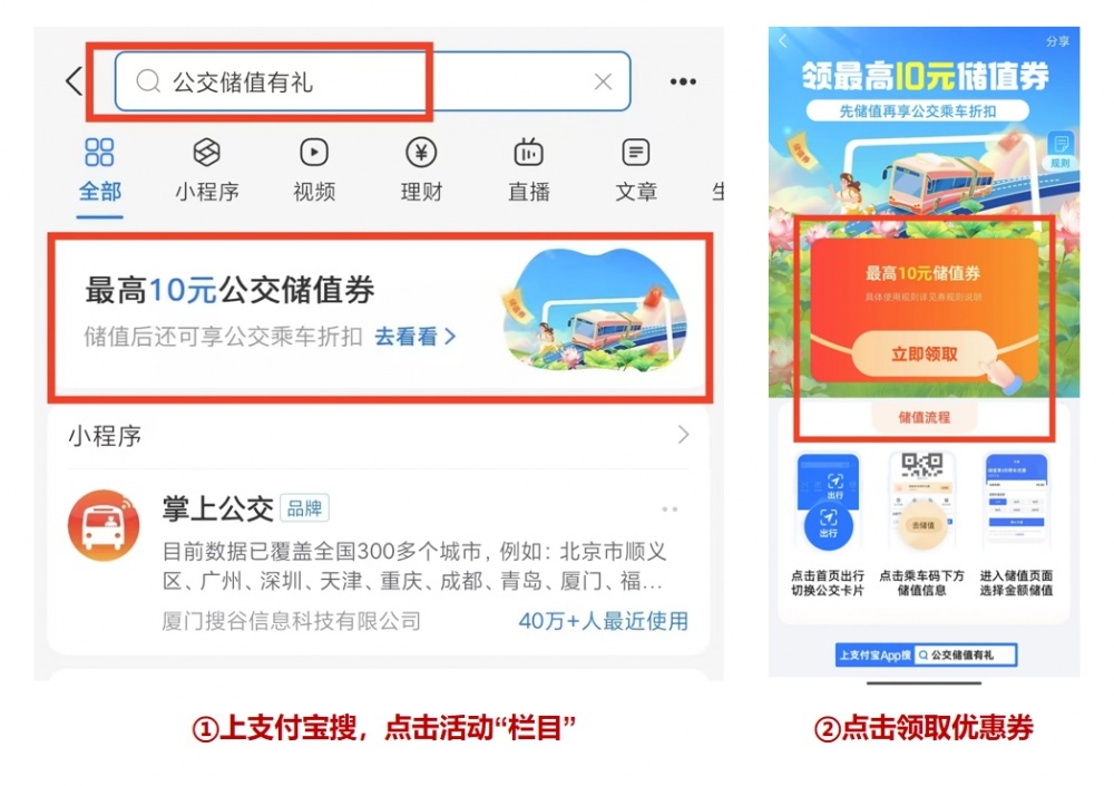 如何領(lǐng)取【儲值立減券】:活動期間,上支付寶搜索【公交儲值有禮】或掃描下方二維碼,進(jìn)入活動頁面,點擊“立即領(lǐng)取“,即可免費領(lǐng)取公交儲值優(yōu)惠。