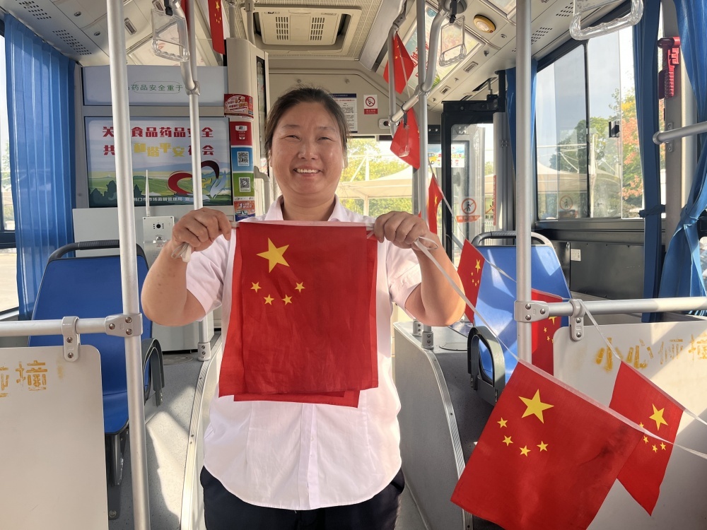 走進公交車廂,映入眼簾的是一面面鮮艷的小國旗,輕輕飄動,仿佛在向每一位乘客傳遞著節(jié)日的喜悅和祝福,除了車廂內(nèi)部的裝飾,公交車輛的LED顯示屏也成為了重要傳播窗口,全天滾動播放國慶祝福語。這些細節(jié)布置不僅為車輛增添了節(jié)日色彩,也讓市民的出行體驗更加美好。