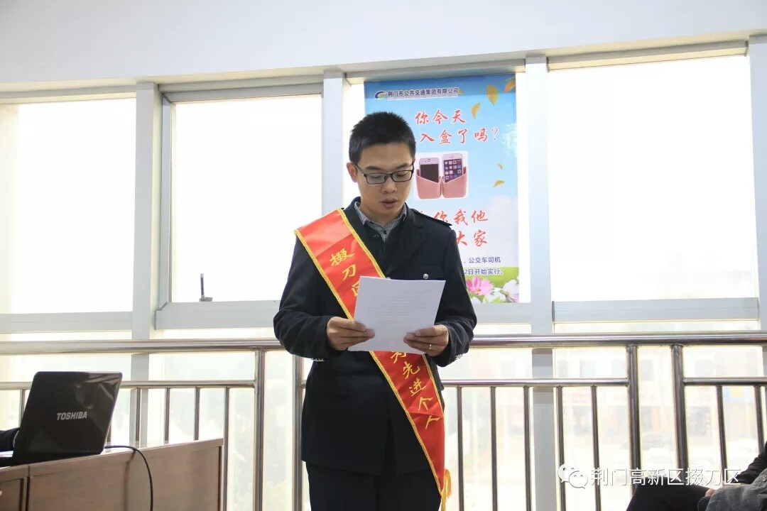 在當天的表彰大會上,荊門市高新區(qū)·掇刀區(qū)政法委副書記朱曉紅、市公交集團有限公司副總經(jīng)理張忠林還分別結(jié)合“10·28重慶萬州公交車墜江事故”要求廣大公交駕駛員遵守職業(yè)道德,如何理性對待無理取鬧的乘客,遠離負能量的人。表揚聶聰聰在他人的財產(chǎn)找到嚴重危害時,義不容辭的出手相救,有效避免了他人重大財產(chǎn)損失,并號召要以身邊的時代楷模聶聰聰為榜樣,學習聶聰聰奮不顧身、見義勇為的高尚品質(zhì),要大力宣傳宣傳見義勇為先進,以先進的事跡感染人、吸引人,以崇高的精神激勵人、鼓舞人,用實際行動傳遞社會正能量,為平安掇刀創(chuàng)建作出新的貢獻。
