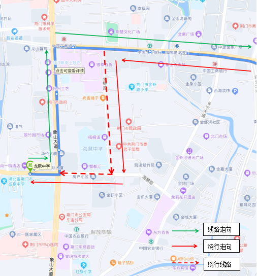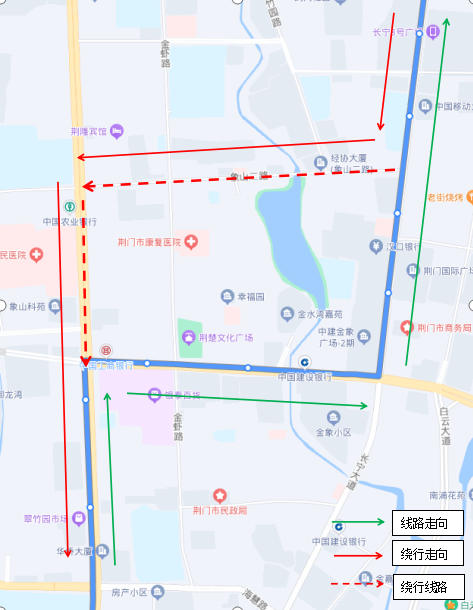 調(diào)整后新增??空军c(diǎn):瀏河橋(西側(cè))、金寧小區(qū)(西側(cè))、荊門電視臺(tái)(西側(cè))、鳳臺(tái)社區(qū)(北側(cè))、海慧中學(xué)(北側(cè))。